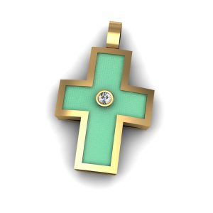 Σταυρός 14Κ χρυσό Σμάλτο με λευκό λίθο (Επιλογές) & αλυσίδα 89