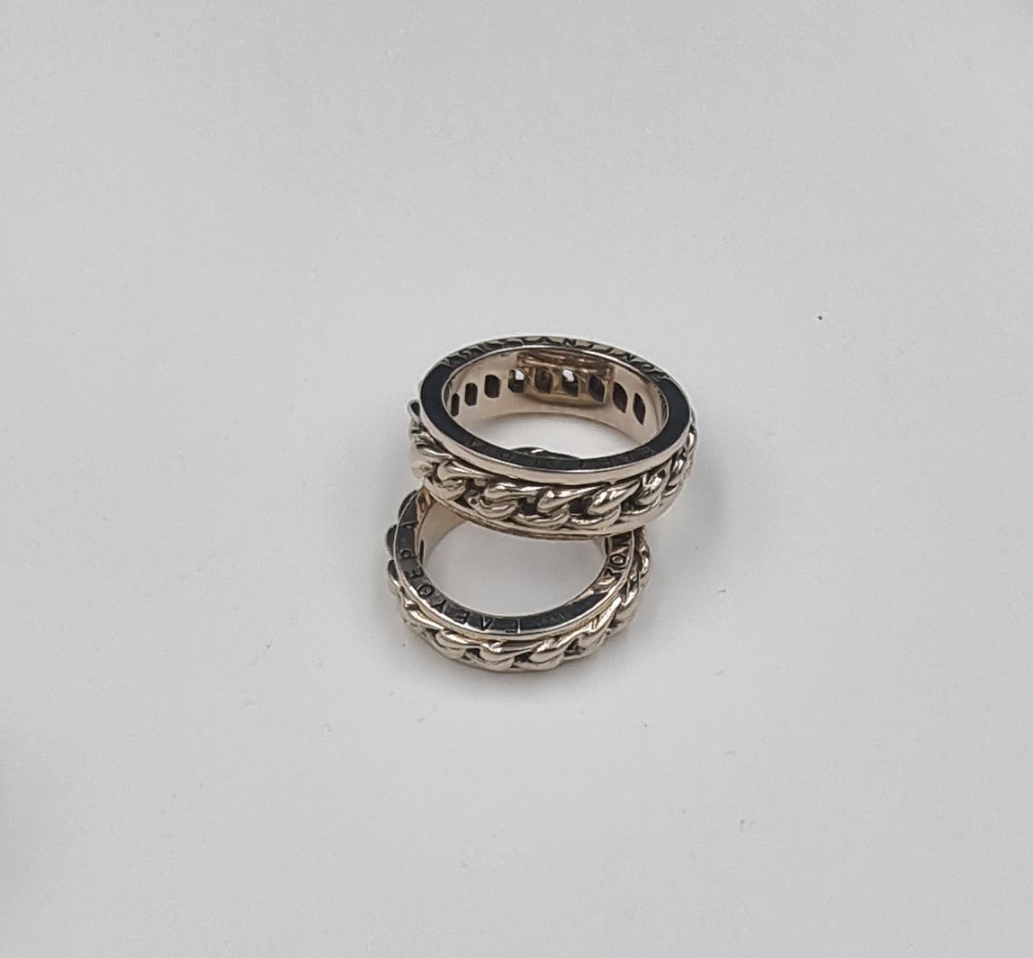 Wedding Band – Hand made 100% with engraved Names & Date with rolling Chain arround the Band