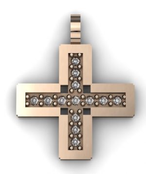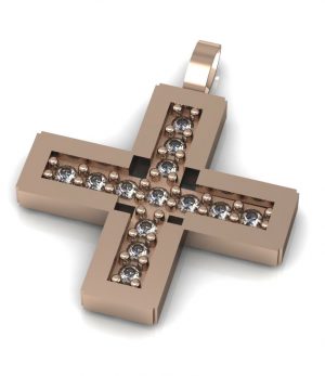 Σταυρός 14Κ ρόζ χρυσό με λίθους & (προαιρετικό) αλυσίδα 84