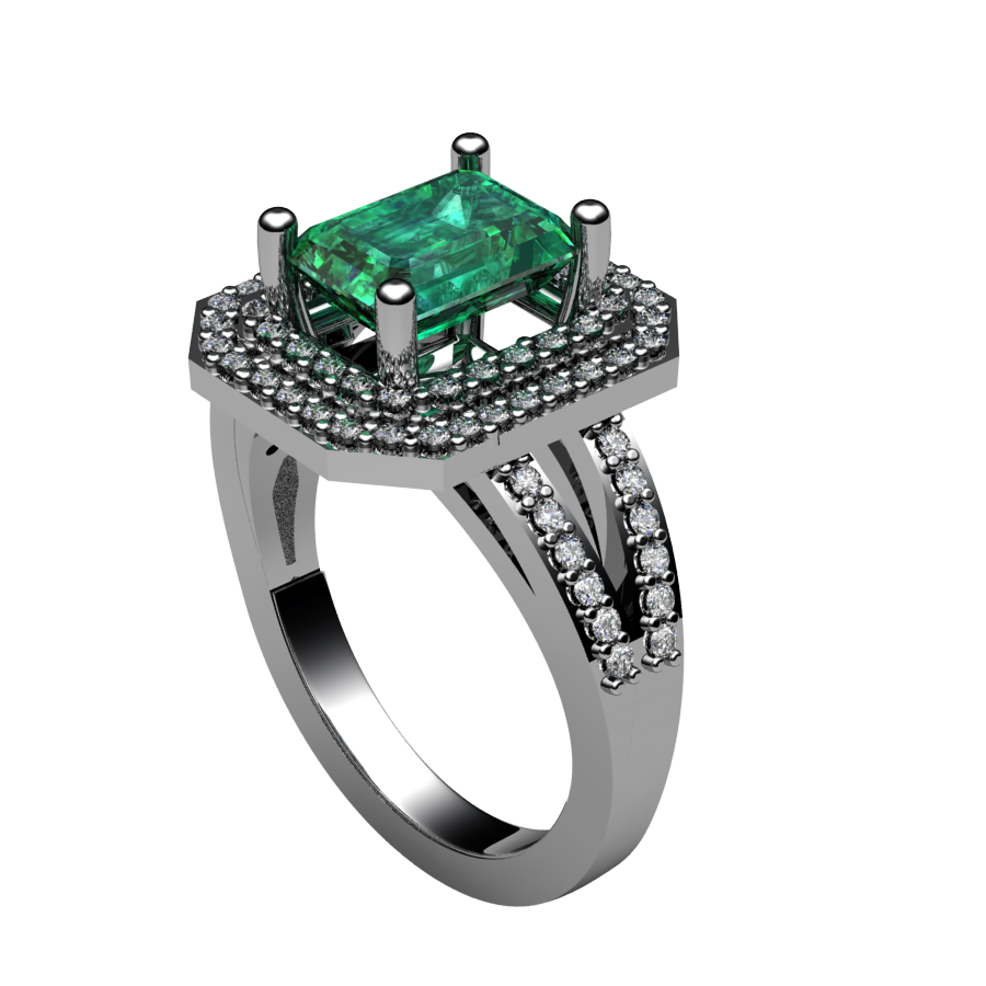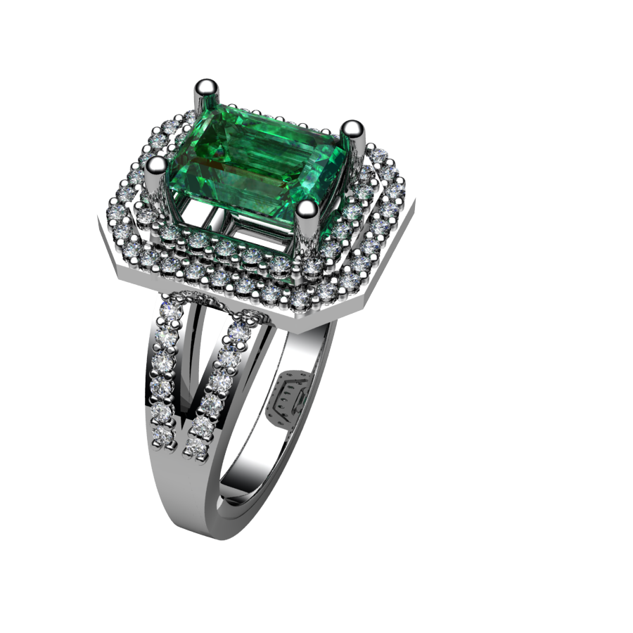 Δαχτυλίδι 14Κ λευκό Χρυσό με Σμαράγδι & Μπριγιάν (επιλογές) ΕΜ0017