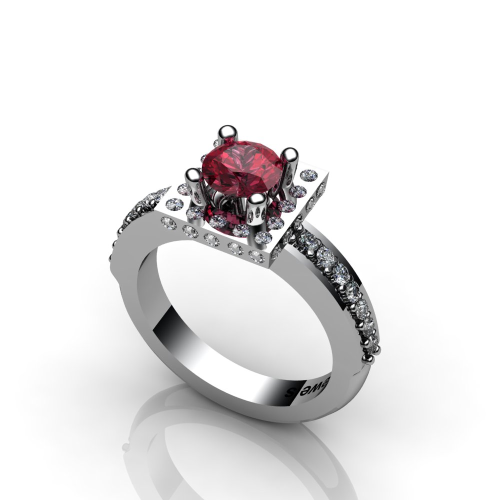 Δαχτυλίδι 14Κ λευκό Χρυσό με Ρουμπίνι & Μπριγίαν (επιλογές) Ρ0054